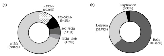 It has already been shown that small CNVs are potentially involved in the development of DSD [29,30,31]. Therefore, we focused on SROs less than 500 kb in size because they are often overlooked when assessing the genome for candidate genes. Although many SROs were large in size (>500 kb) and therefore outside our range of focus, these data can be used in future investigations. With further analysis, these larger CNVs can be partitioned into smaller regions that eventually pinpoint the etiology of various AFG.