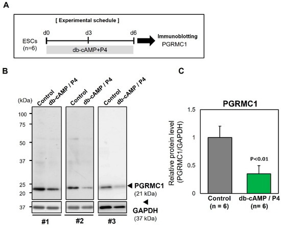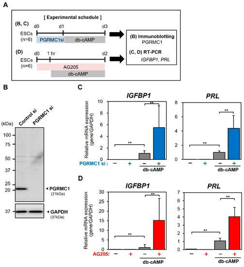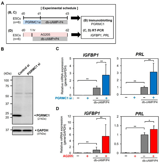 3.2. Downregulation of PGRMC1 During Decidualization of ESCs In Vitro