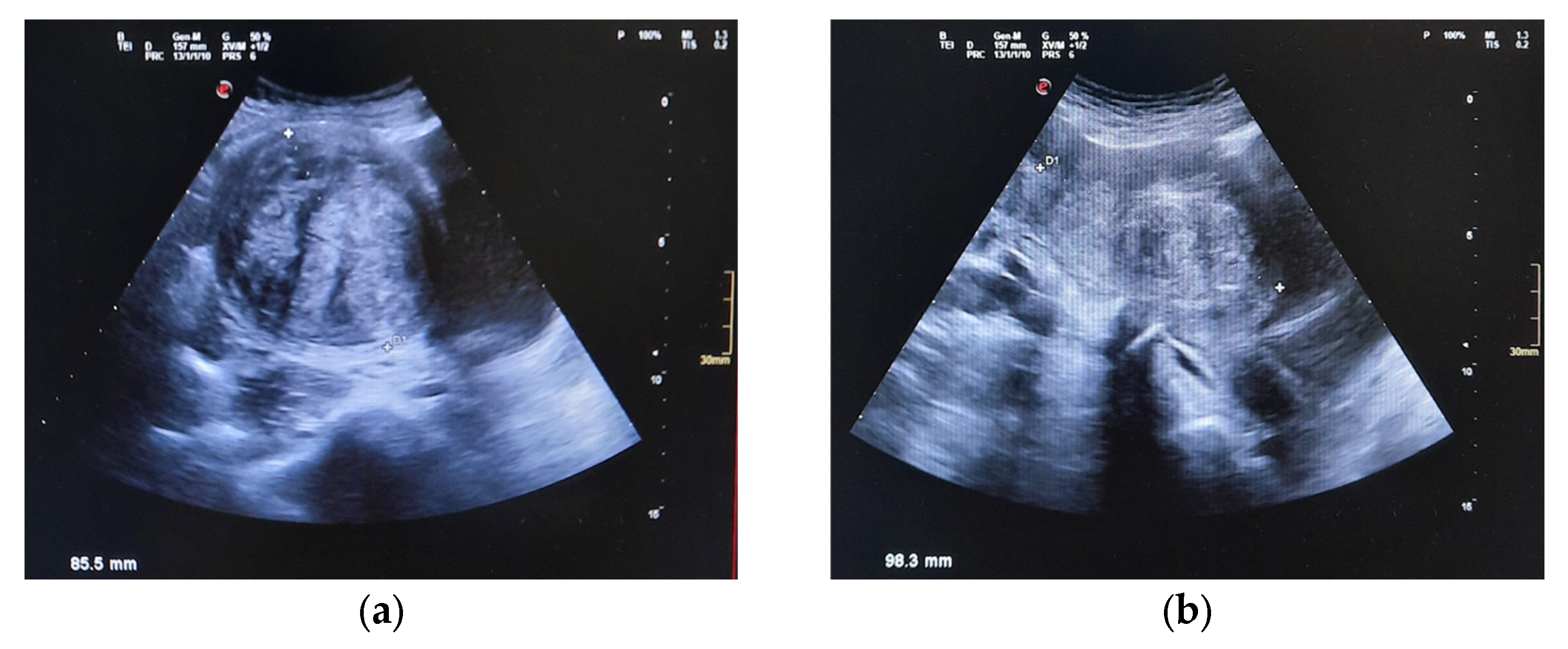 - Leo, L.; Thomasset, R.; Massaro, A.; Tinelli, R.; Masturzo, B.; Remorgida, V.; Libretti, A.; Natrella, M. A 40-year-old woman with inoperable uterine fibroids treated with combined uterine artery embolization and relugolix. Am. J. Case Rep. 2025, 26, e946334. [Google Scholar] [CrossRef]