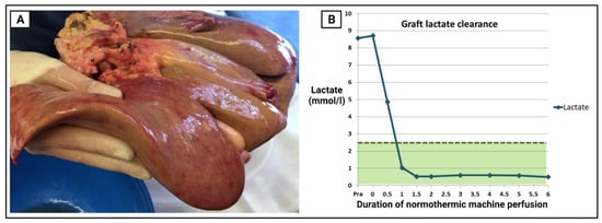 - Hann, A.; Lembach, H.; Nutu, A.; Mergental, H.; Isaac, J.L.; Oo, Y.H.; Armstrong, M.J.; Rajoriya, N.; Afford, S.; Bartlett, D.; et al. Assessment of Deceased Brain Dead Donor Liver Grafts via Normothermic Machine Perfusion: Lactate Clearance Time Threshold Can Be Safely Extended to 6 Hours. Liver Transpl. 2021, 28, 493–496. [Google Scholar] [CrossRef]