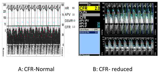 The concept of coronary flow reserve (CFR) is developed to describe the flow increase available to the heart in response to increased oxygen demand. CFR represents the vasodilator capacity of the coronary vascular bed during hyperemia and is measured by indicator thermodilution. CFR is expressed as the ratio between maximal hyperemic flow (after intracoronary adenosine injection) and resting flow. A descriptive vie of CFR is shown in Figure 8. In general, CFR > 2 is considered normal. In the presence of coronary stenosis, there is already vasodilation of the coronary artery distal to the stenosis, and there is diminished further dilation of coronary circulation after administration of adenosine, and thus CFR is reduced []. A decrease in CFR after adenosine administration to achieve maximum vasodilation without significant epicardial stenosis indicates microvascular dysfunction. CFR data in children is limited. In a small study including 33 patients, 17 had epicardial coronary artery stenosis, CFR was reduced and correlated with histopathologic and angiographic evidence of microvascular disease []. CFR can also be measured by transthoracic Doppler echocardiography, and its feasibility and good correlation with myocardial perfusion study are shown in children with Kawasaki disease [].