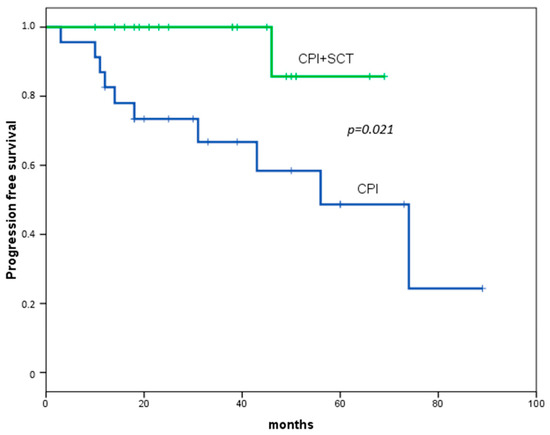 An important clinical decision is whether to discontinue CPI treatment upon achieving a response or to continue until disease progression. In our series, patients who completed treatment were those in CR. One relapse was documented in the HSCT group (after auto-HSCT), and three relapses occurred in the non-HSCT group. Emerging data indicate that PD-1 blockade may “resensitize” cHL to standard chemotherapy, with patients who relapse or progress after anti-PD-1 therapy responding to salvage chemotherapy, even if previously refractory [22]. This approach has allowed some patients to receive consolidation with HSCT, increasing the likelihood of recovery [24].