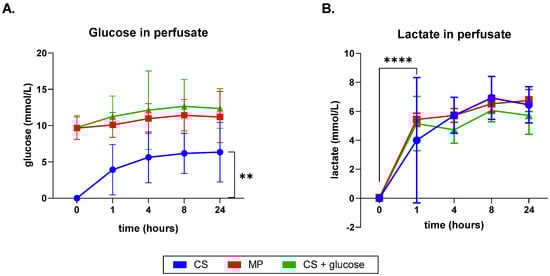 3.3. Glucose and Lactate Released into the Perfusion Solution