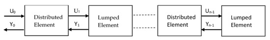 The hybrid model of intertwined lumped and distributed dynamic components, proposed by Robert Whalley in [13], is represented in Figure 1. Distributed elements are separated by lumped elements, where each item’s output represents the input of the element. For that modelling process, one basic rule is that the model should end up in a lumped product.