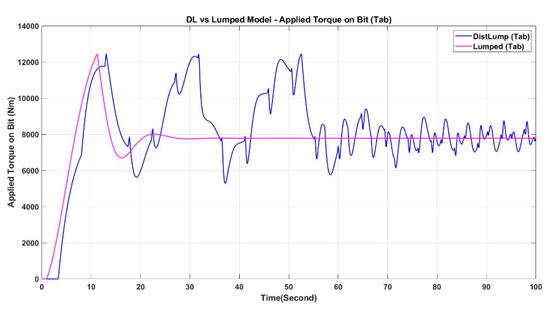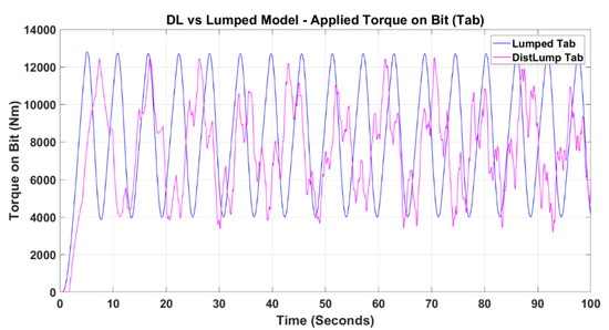 In different studies that have been focused on modelling drilling behaviour, the three classes of vibrations have been separate or combined [1,2,3,4,5,6,7,8,9,10,11,12]. The focus of this article is on the BHA’s torsional vibration. The related phenomenon is that the top portion of the drill line rotates at a constant rotational speed, while the bit of the rotational speed varies from zero to up to six times the surface rotational speed. This paper introduces a model of a lumped parameter and a hybrid model consisting of the drilling system’s distributed–lumped parameter model.