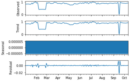 Before passing the power data into the proposed pipelines, the nature of the data is first analysed. Here, a simple time series analysis is considered as a baseline analogy. The sensory data measurements of all system parameters are scaled between the value of 0 and 1 and are plotted for a period of one year. On observing Figure 4, it is found that certain parameters have similar variation patterns with respect to time. For instance, Main Steam Line Pressure and Reactor Inlet Header Temperature (RIHT) seem to be correlated. However, this correlation cannot be modelled by using linear methods. The time series linear power data is then decomposed into its components to look for any trend or seasonality present in it. As seen in Figure 5, no general trend or proper seasonality could be captured through the decomposition. Next, an Augmented Dickey Fuller (ADF) Test was done on the data to check if the data is stationary or nonstationary. As per the test if the test statistic value is greater than any of the critical values, the null hypothesis is rejected and state time series is not stationary. Similarly, if p value is greater than 0.05, then the null hypothesis is rejected with enough evidence. In this case, it is observed in Table 1 that the ADF statistic value is larger than all critical values and p-value is greater than 0.05, and hence the null hypothesis is rejected and reactor power data is declared nonstationary.