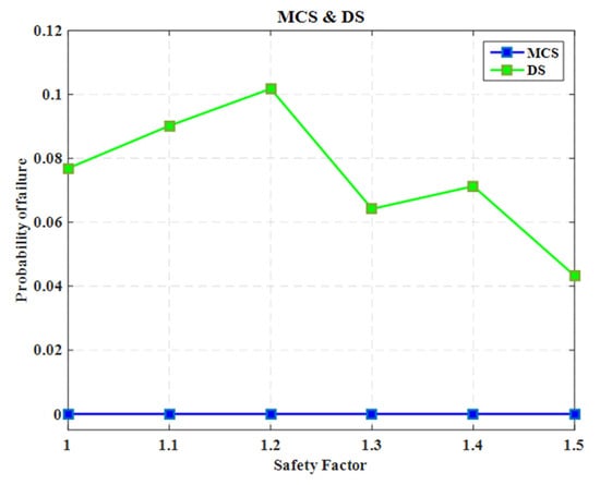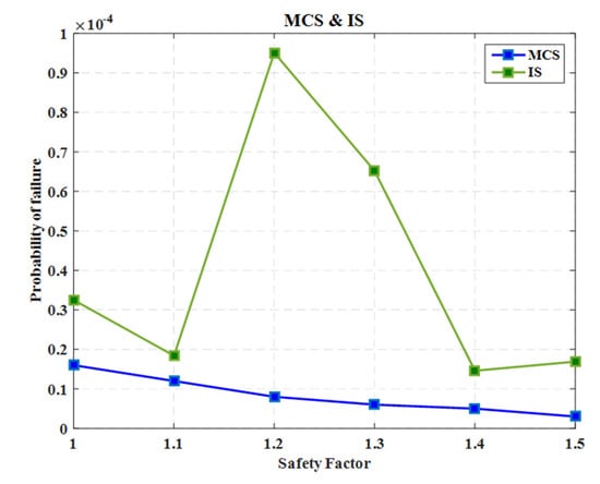- The results showed that subset simulation (SS) has excellent performance for the accurate and precise estimation of failure probability compared to the IS, LS, and DS. The SS yielded the lowest relative error, relative to MCS, in which the highest error was 1.41% for a safety factor between 1 and 1.5.