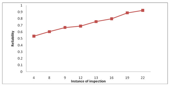 Thus, the reliability of an imperfect inspection strategy can be evaluated. In addition, with Equation (20), the derivation of the reliability at any time x is proposed, where (0:
