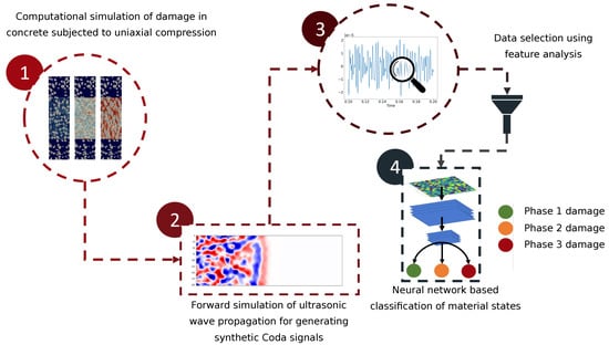 The aim of using simulated data for damage classification is not only to overcome the labor intensive effort in generating real coda data in the laboratory but also to facilitate a real time ultrasonic-based damage assessment system of a concrete structure prior to the acquisition of the actual data, provided that important details of the simulated processes (damage evolution and ultrasonic wave propagation) are appropriately captured in the respective numerical simulations.