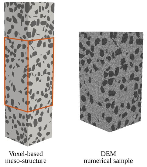 33])) developed by the authors was used to generate an ultra-realistic concrete specimen in which the coarse aggregates are explicitly resolved. The physical dimensions of the synthetic concrete specimen is