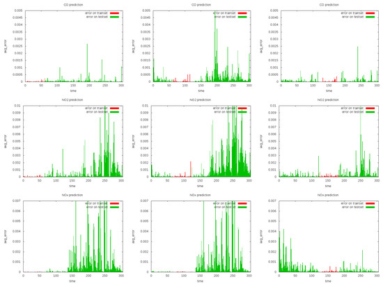 We have used a real-world dataset [7,8]. It contains measurements of gas multi-sensor MOX array devices recording several gas pollutants concentrations. Data are labelled by a conventional air pollution monitoring station. The frequency of measurements is 1 hour, but data contain many missing values (due to sensor malfunctions). In this paper, we use data from 10 March 2004 to 4 April 2005. Lines with missing values are neglected. There are five sensor measurements as inputs, and we have chosen three output values, representing concentrations of CO, NO2 and NOx gases, as targets.