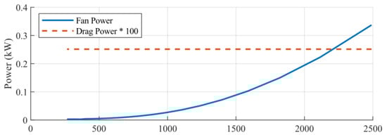 As an extension to the previous modeling work from [11], a model was created to evaluate the power consumption associated with additional drag on the vehicle due to underhood airflow, which is set by the vehicle speed, fan rotational speed, and AGS open-fraction. The model for this power consumption is: