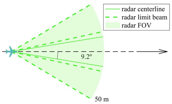 When considering a UAV traveling at 15 m/s, the RADAR range (50 m) was traversed in 3.3 s. If an obstacle was moving at 15 m/s head on, the available reaction time was 1.7 s, which might be a challenging time to successfully complete an evasion maneuver. However, the tracking is likely to be more successful given the large FOV.