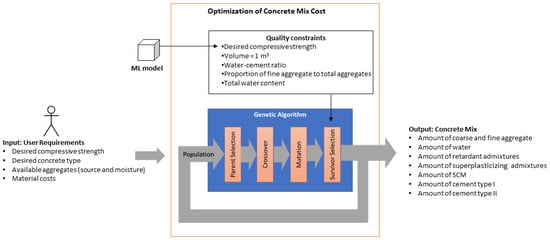 Modeling and Optimization of Concrete Mixtures Using Machine Learning Estimators and Genetic Algorithms