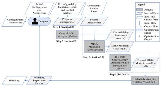The designer’s main tasks are determining the propulsor configuration in Step 1 and designing the system’s physical architecture in Step 2 to evaluate reliability. Steps 3 and 4 are primarily automated for efficiency. Figure 1 illustrates the methodology and its integration into the case study optimization process presented in Section 4.
