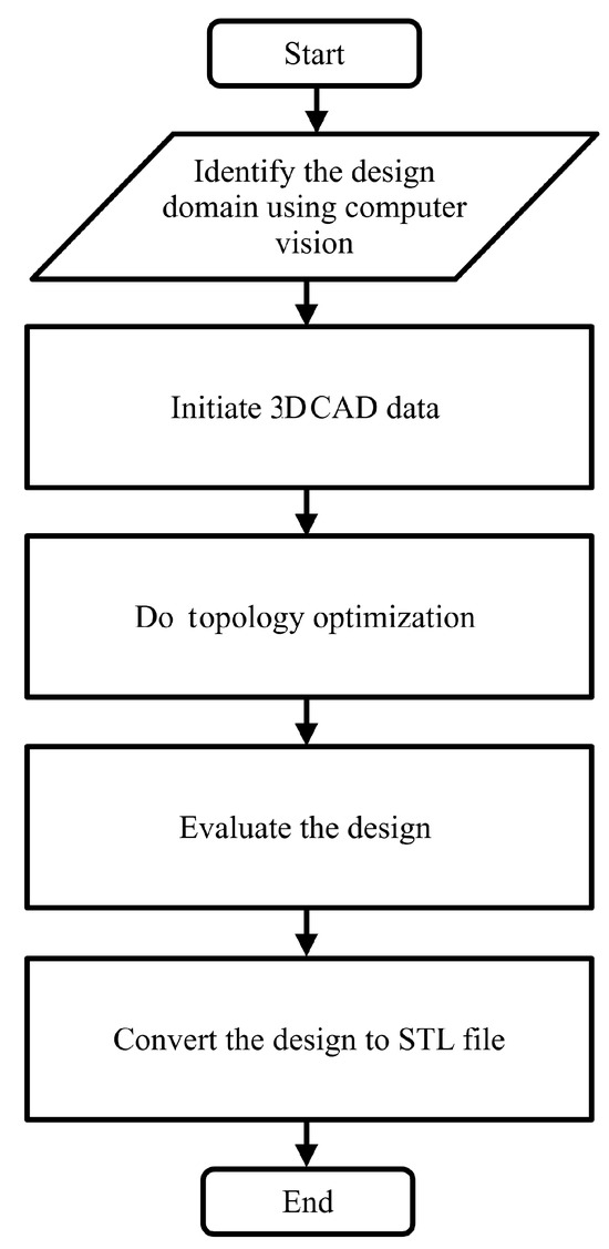 In conclusion, this numerical study introduces a novel integration of computer vision and topology optimization to enhance designs for additive manufacturing. Utilizing advanced photogrammetry software tailored for high-resolution camera systems, we capture dynamic images of the design domain to create highly accurate 3D models. These models are converted into an STL file format, preserving the detailed features from the scans. The subsequent remeshing process, performed using an adaptive meshing algorithm within the COMSOL Multiphysics environment and managed through a custom MATLAB application, ensures optimal mesh resolution and accuracy.