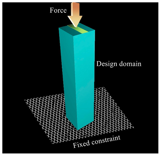 This design approach is guided by the goal of accurately representing typical structural behaviors and constraints in a simplified yet effective manner. By assigning the free upper edge for loading and fixing the base, the model ensures that the optimization process can focus on refining the pillar’s structural efficiency under these defined conditions. This setup allows for a detailed exploration of how the pillar’s geometry influences its load-bearing performance, facilitating the identification of the optimal structural configurations that balance material usage and mechanical strength. Figure 2 illustrates these design choices, showcasing how the defined loading and constraint conditions are applied to the optimization problem, thus enhancing the relevance and applicability of the results to real-world engineering challenges.