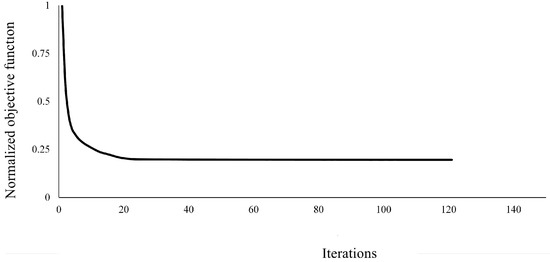 Figure 5 illustrates the convergence behavior of the optimization algorithm over successive iterations. The x-axis represents the number of iterations, while the y-axis depicts the normalized objective function value. Initially, the objective function value is near 1, indicating suboptimal conditions. However, as iterations advance, the objective function value significantly decreases, demonstrating the algorithm’s rapid convergence towards an optimal solution. By the 20th iteration, the curve begins to plateau near zero, indicating that the algorithm has effectively minimized the objective function and is approaching optimality. The initial steep decline followed by an asymptotic plateau highlights the algorithm’s efficiency and stability in the optimization process. This rapid reduction in the objective function value suggests that the method swiftly identifies a near-optimal solution, with subsequent iterations offering diminishing returns. The convergence graph underscores the algorithm’s ability to balance rapid convergence with stable minimization, ensuring the efficient achievement of an optimal or near-optimal solution.