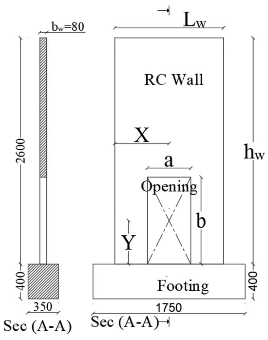| Dimension | Shear Wall Real Life (mm) | Numerical Model (mm) |
