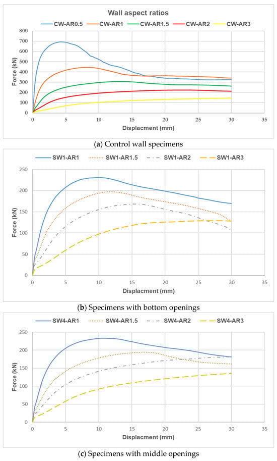 4.4. Effect of Changing Aspect Ratios of Shear Walls