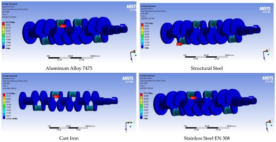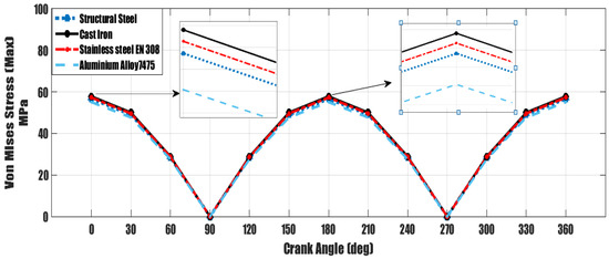 Von Mises stress of the studied materials.