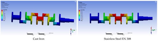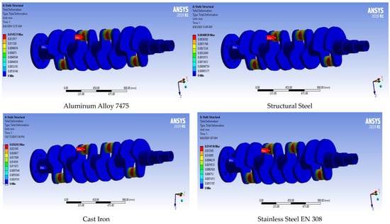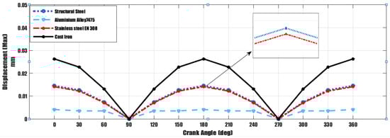 Displacement analysis results for the studied crankshaft materials.
