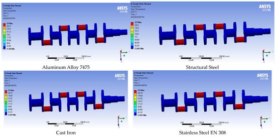 Mechanical and thermal properties (Aluminum Alloy 7475, Cast Iron, Stainless steel EN 308, Structural Steel).