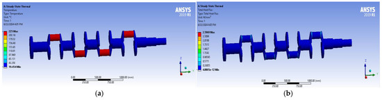 Crankshaft analysis results (a) von Misses stress and (b) displacement.