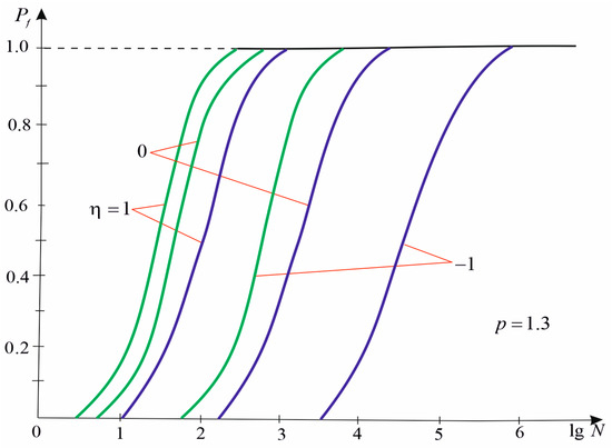 33], and according to expressions (26), and (30)–(35), the dependence of the probability of plate failure