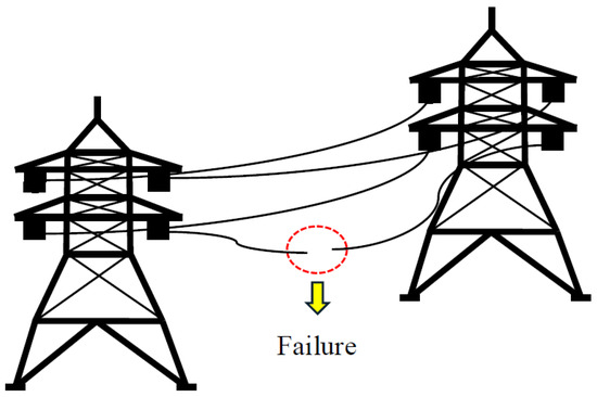 This study aims to analyze the failure mechanisms in overhead transmission lines by developing a coupled model that integrates thermal, mechanical, and electrical aspects. We systematically assess how mechanical properties, in terms of damage, affect the electrical and thermal aspects of the cable in the presence of environmental conditions contributing to line reliability. Figure 1 illustrates the transmission line mounted on the transmission tower, highlighting the cable failure.