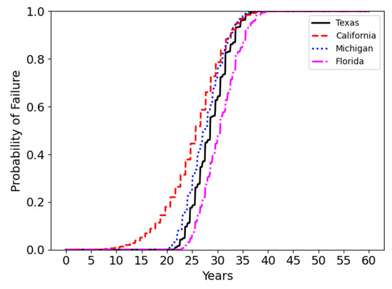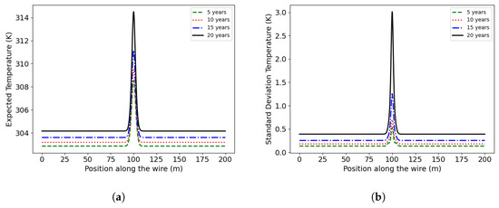 In a recent study [50], the authors integrated the phase-field model with thermal and electrical modules to predict the lifespan of overhead transmission lines. The study initially examined a deterministic solution and later implemented the PCM for stochastic analysis. However, a more comprehensive analysis involving historical data across various specific states would provide a more realistic assessment. The reliability and durability of transmission lines vary under different weather conditions, highlighting the need to adjust the weather condition assessments to particular cases. Furthermore, analyzing the lifespan of transmission lines with insignificant initial damage could offer valuable insights into the extent to which pre-existing damage influences overall reliability.