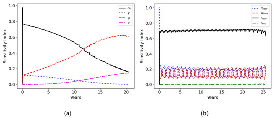 The original model described in [28] is time-dependent. However, we considered the quasi-static form for our problem, which allowed us to simplify the governing equations for and . Still, the evolution of , which represents long-term aging, is modeled as a time-dependent ordinary differential equation (ODE), as follows:
