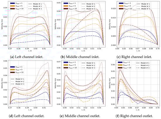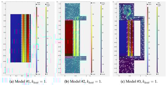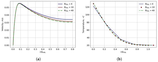 - The number of elements in the thermal boundary layer is . This parameter has a significant influence on both thermal and hydrodynamic designs, as reflected in the accurate temperature values obtained.