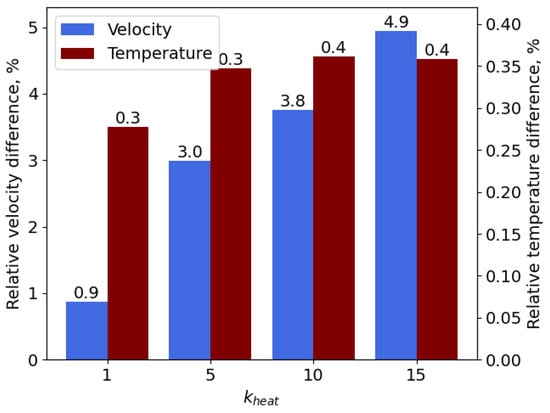 | Type of Mesh | Heat Coefficient | Temperature, °C | Velocity, mm/s | |||