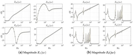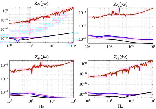 The frequency was swept from 10 Hz to 6.5 kHz. It can be noted that both approaches match very well in magnitude; the plot of the phase is omitted this time, but the results were also paired. It is also seen in Figure 10 that potential resonance peaks are placed around 100 Hz. A more in-depth stability analysis can be conducted to study these phenomena using the impedance method.