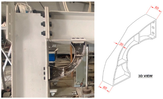 Al-Sadoon et al. [28] undertook a study to validate the efficacy of a newly developed energy dissipation device (EDD) intended for application in moment-resisting steel frame structures. This device, which consists of a curved steel plate (Figure 1) along with stiffeners and flanges at both ends, underwent testing in a laboratory setting using a displacement control quasi-static loading protocol. The research conducted by Hsu and Halim [29] supports the use of steel curved dampers to enhance the structural integrity of the system. These dampers were fabricated by laser cutting steel plates into specific shapes and were strategically placed at the connections between beams and columns. The findings revealed that the performance of the dampers was significantly influenced by variables such as their length, the angle at their ends, and the type of connection to the steel frames. Notably, the introduction of curved steel dampers led to improvements in strength, stiffness, and energy dissipation of the frame during both tension and compression. Ghabussi et al. [30] focused on the application of steel curved damper (SCD) systems to investigate the structural behavior of steel portal frames. The study incorporated five dampers that were uniform in length and thickness but differed in angles and eccentricities, applied to both pitched roof symmetric and mono-pitch portal frames. Additionally, another research effort [31] examined various damper types commonly utilized in steel structures, including steel plate, pipe, curved, and slit dampers. It was concluded that curved steel dampers with a 60° angle provided the greatest energy dissipation and structural robustness.