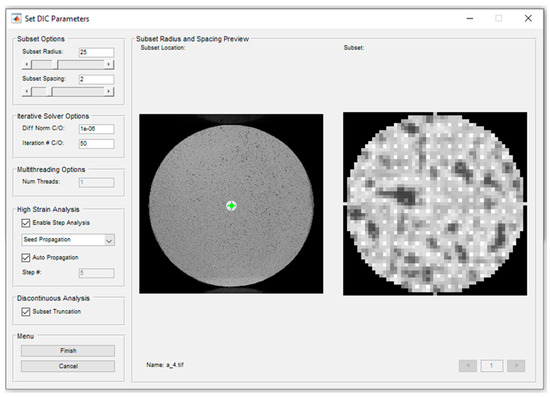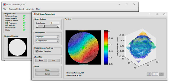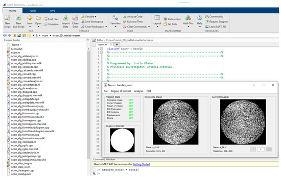 - Blaber, J.; Adair, B.; Antoniou, A. Ncorr: Open-Source 2D Digital Image Correlation Matlab Software. Exp. Mech. 2015, 55, 1105–1122. [Google Scholar] [CrossRef]