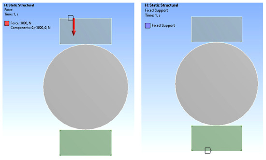 - Fixed Support: motion restriction imposed on the bottom face of the lower support.