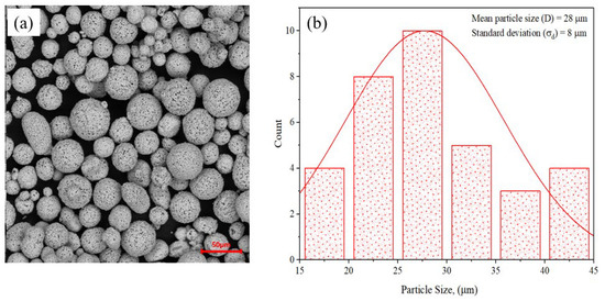 SEM image of morphology (a) and Particle Size distribution of the initial 86WC-10Co-4Cr powder (b).