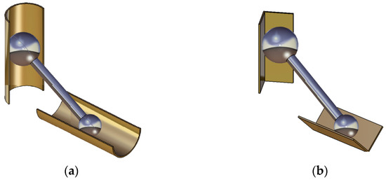 Solutions for supporting the ends of the rod for ensuring the motion in the vertical plane: (a) sphere—semi-cylindrical groove contact; (b) sphere—V-shaped groove contact.
