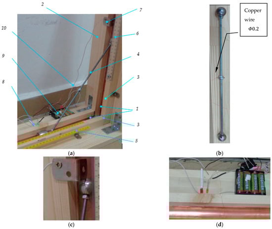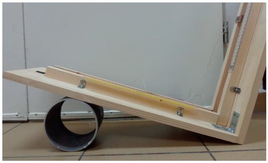 The experimental validation of the theoretical model must overcome several challenges. The actual rod has a tangible thickness and thus, the rod–wall contact is formed in a singular point at the end of the rod. For the actual model, the friction with the walls cannot be neglected, and maintaining the moving rod within the vertical plane also presents a difficulty.