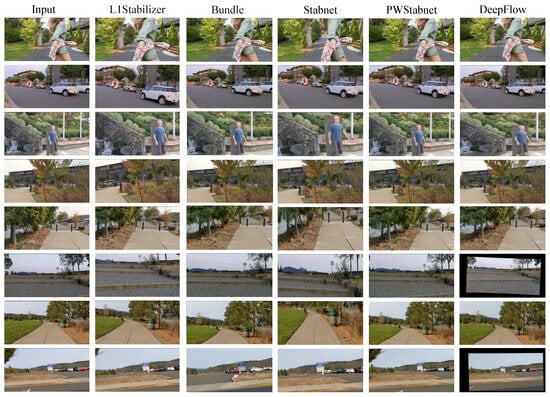 Yu and Ramamoorthi [54] proposed a neural network named DeepFlow. This network innovatively adopts the optical flow method for motion analysis and directly infers the pixel-level warping used for video stabilization from the optical flow field of the input video. The DeepFlow method not only uses optical flow for motion restoration but also achieves smoothing through the warping field. In addition, this method applies the PCA optical flow [55] technology to the field of video stabilization, thus significantly improving the processing robustness in complex scenes such as moving objects, occlusions, and inaccurate optical flow. This strategy of integrating optical flow analysis and learning represents a significant approach for video stabilization.