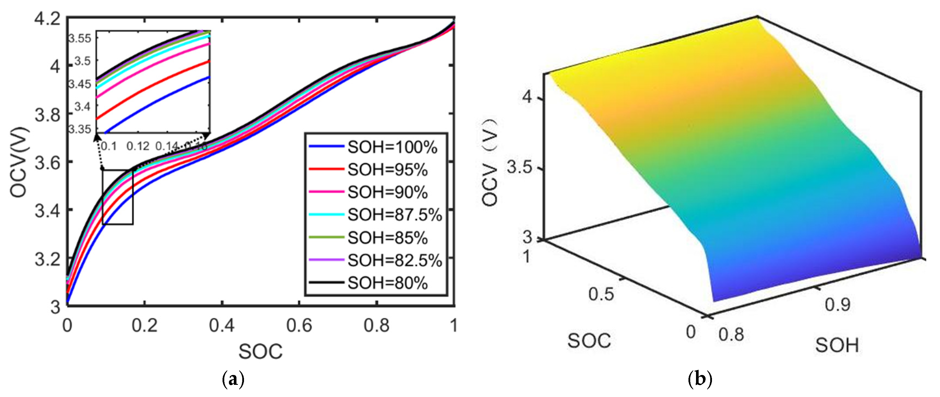 - He, J.; Wan, K.; Lu, L.; Yu, M. An Online OCV Calibration-Based Adaptive SOC Estimation Approach for Lithium Battery. In Proceedings of the 2023 8th International Conference on Power and Renewable Energy (ICPRE), Shanghai, China, 22–25 September 2023. [Google Scholar] [CrossRef]