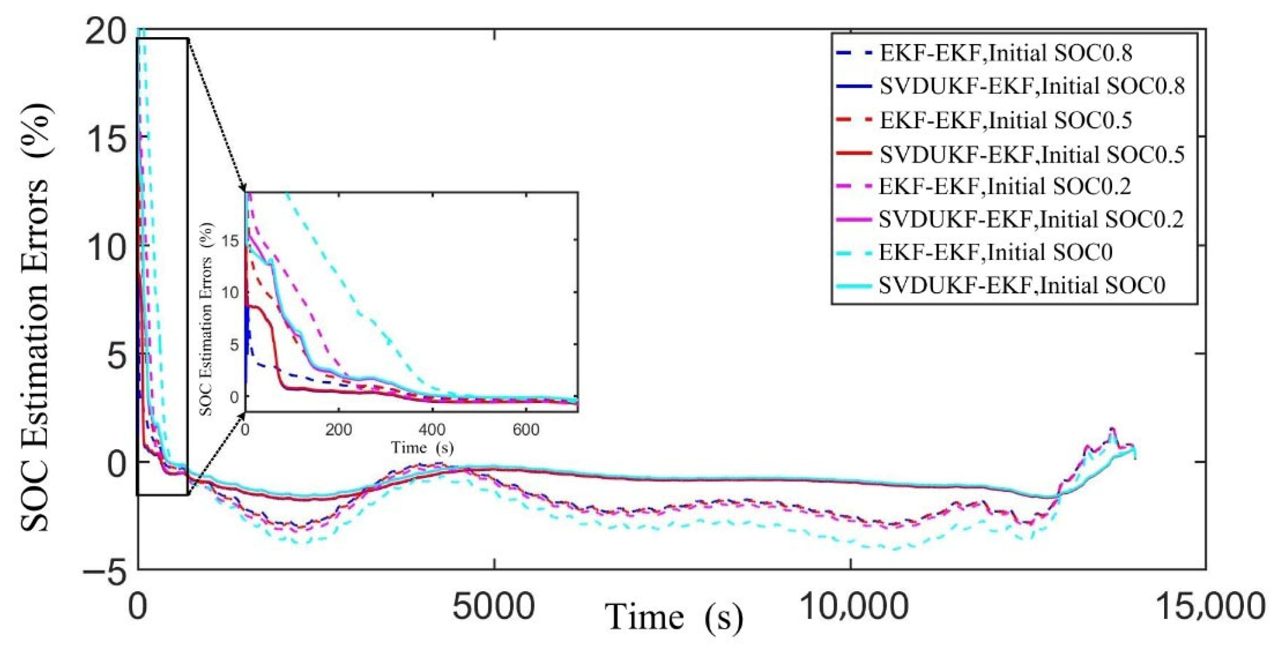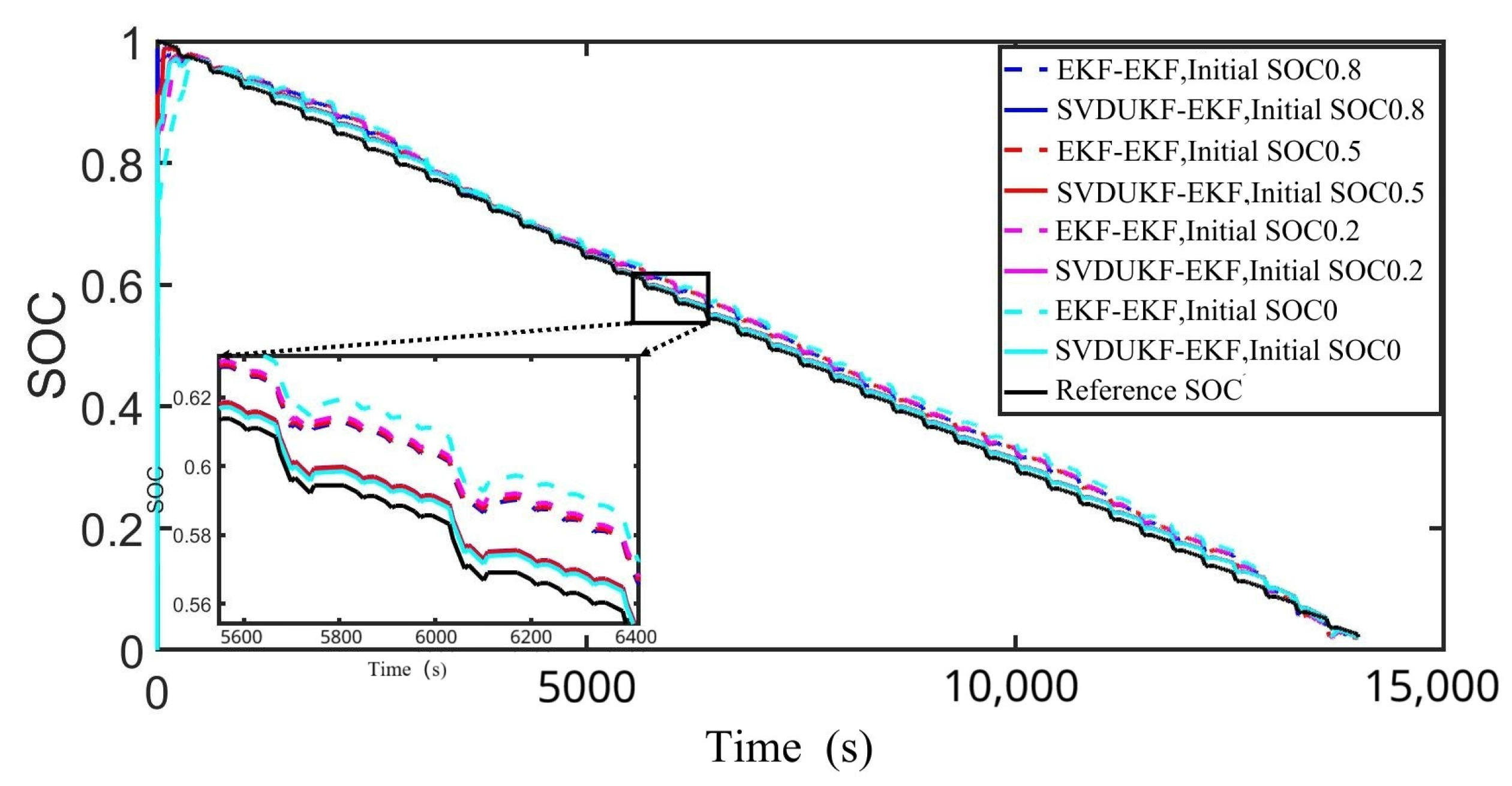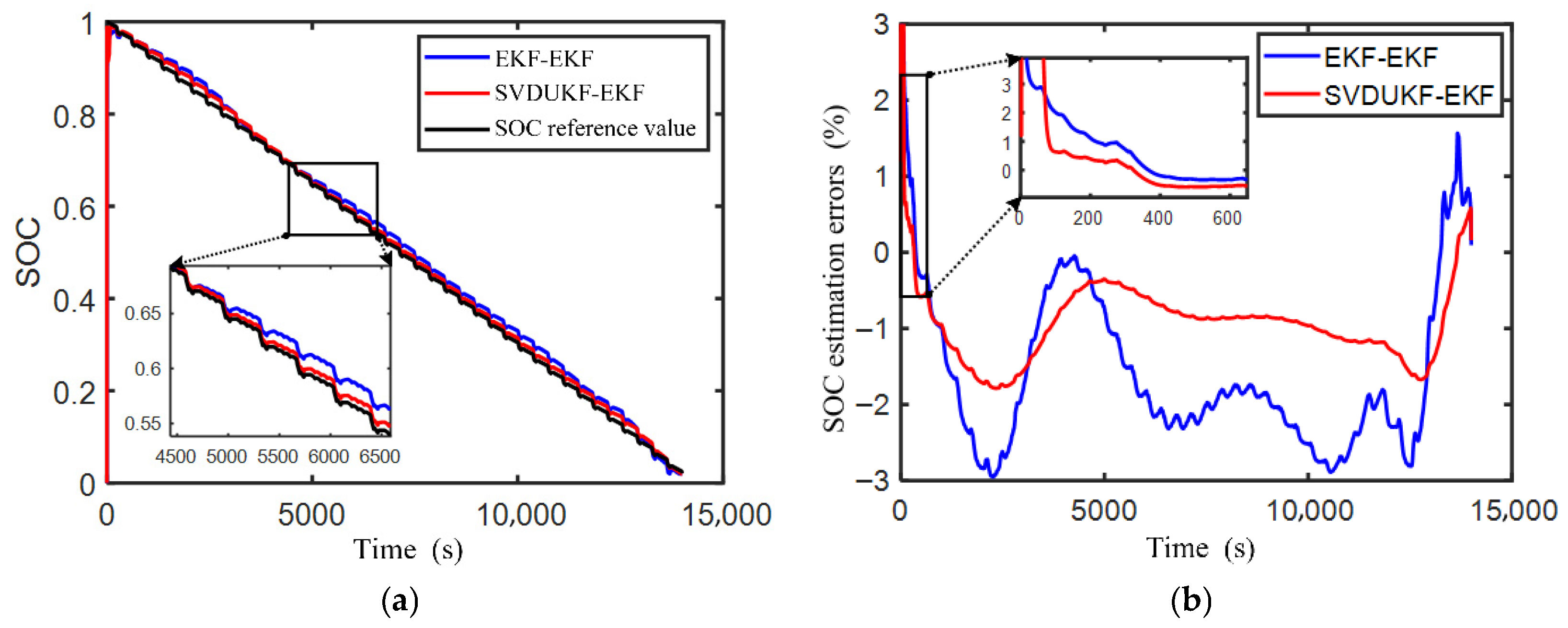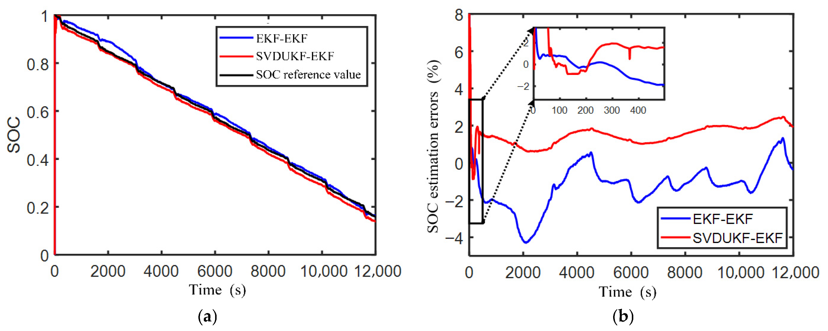 - Zhao, X.; Sun, B.; Zhang, W.; He, X.; Ma, S.; Zhang, J.; Liu, X. Error theory study on EKF-based SOC and effective error estimation strategy for Li-ion batteries. Appl. Energy 2024, 353, 121992. [Google Scholar] [CrossRef]