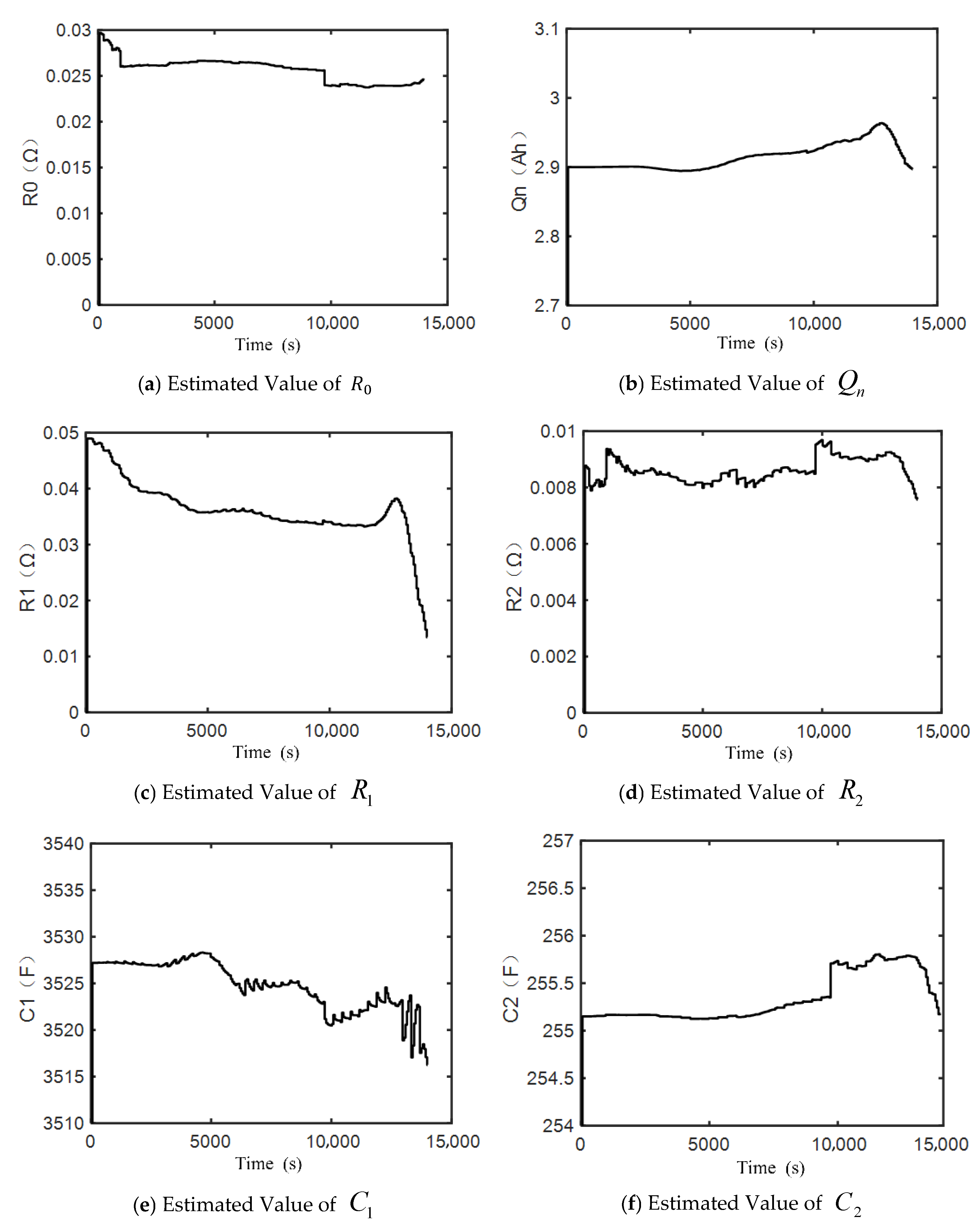 - Yu, Q.; Xiong, R.; Lin, C.; Shen, W.; Deng, J. Lithium-Ion Battery Parameters and State-of-Charge Joint Estimation Based on H-Infinity and Unscented Kalman Filters. IEEE Trans. Veh. Technol. 2017, 66, 8693–8701. [Google Scholar] [CrossRef]