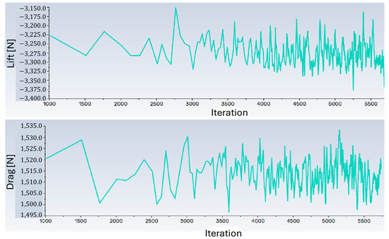Table 2 presents a comparison of the aerodynamic forces obtained from the three meshes. The results indicate that the variation in both lift and drag forces between the coarse and fine meshes was less than 7%, confirming that the selected 24 million cell mesh was sufficient to achieve mesh-independent solutions.