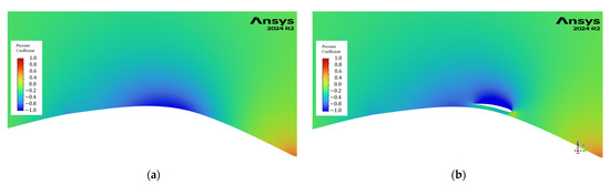 Figure 11. Midplane flow fields: (a) pressure coefficient contour for Base Model, and (b) pressure coefficient contour for U1.