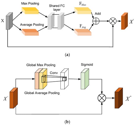 The outputs of the two FC layers are summed and then passed through the sigmoid activation function; , which denotes the sigmoid activation function. The input feature map is multiplied with the channel attention weights to obtain a weighted feature map: