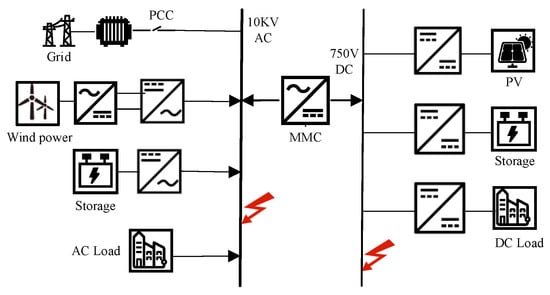 The increasing integration of power electronic equipment has led to a heightened probability of faults in AC/DC microgrids. Consequently, these faults propagate more rapidly, and there exists significant variations in the magnitude, direction, and duration of fault currents [,,,,,]. Therefore, accurate fault diagnosis is essential for ensuring the safety, reliability, and stability of AC/DC microgrids.