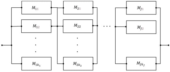 The lessee rents equipment for the production of a specific type of product. The overall system comprises a leased production line consisting of sequential processing stages, as shown in Figure 1. Each stage () is equipped with parallel-configured devices. For instance, within process , one can find devices , , …, . The system supports both independent and coordinated operation modes. A disruption at any single processing stage results in the interruption of the entire production flow. All equipment is provided and maintained by the lessor, while the lessee pays rental fees based on usage. To improve maintenance efficiency and ensure uninterrupted production, both parties share real-time equipment condition data and collaborate in the optimization of maintenance strategies and decision-making processes.